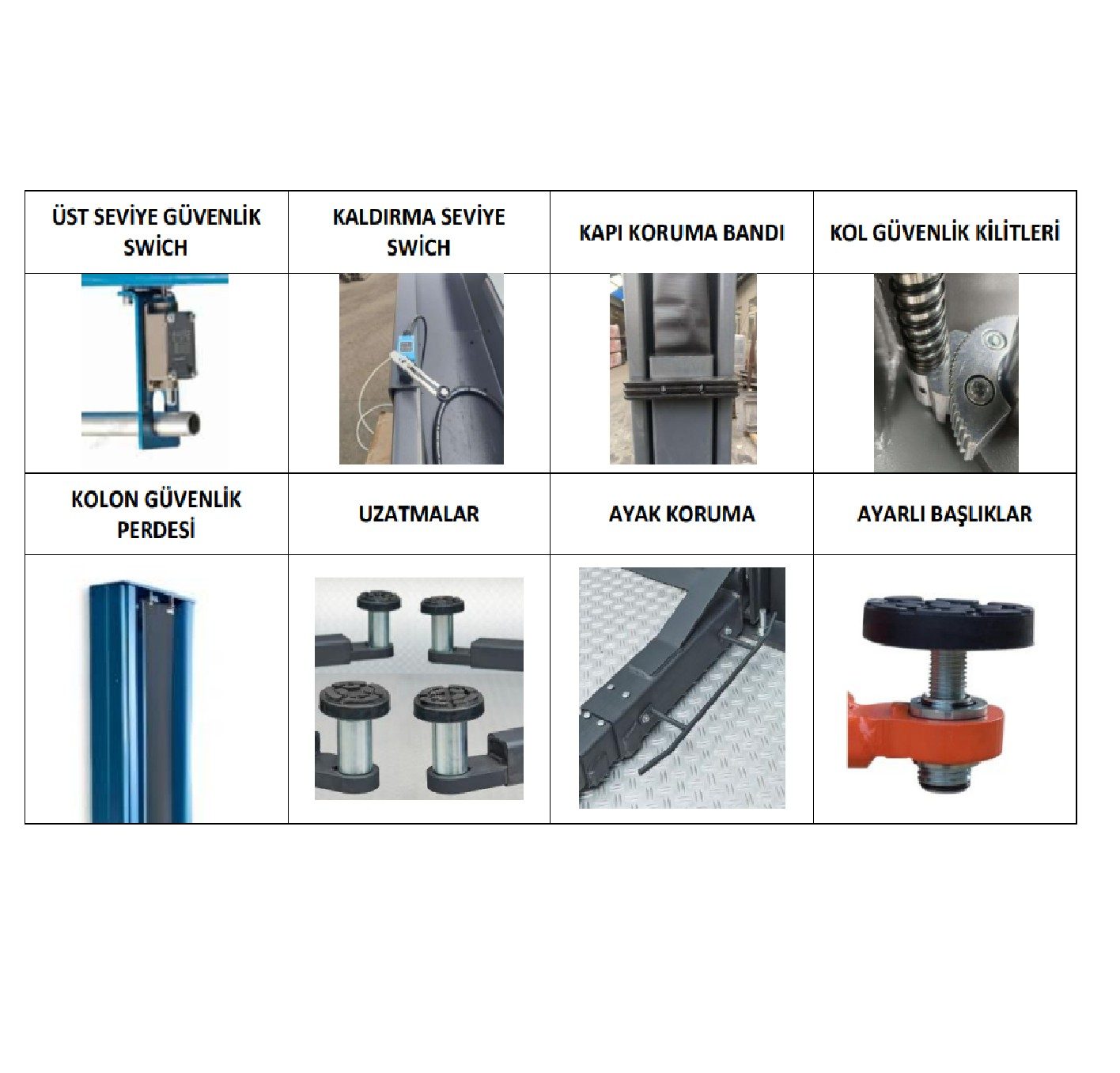 Tam otomatik ve senkronize hidrolik sistem sayesinde araç dengeli ve güvenli şekilde kaldırılır.