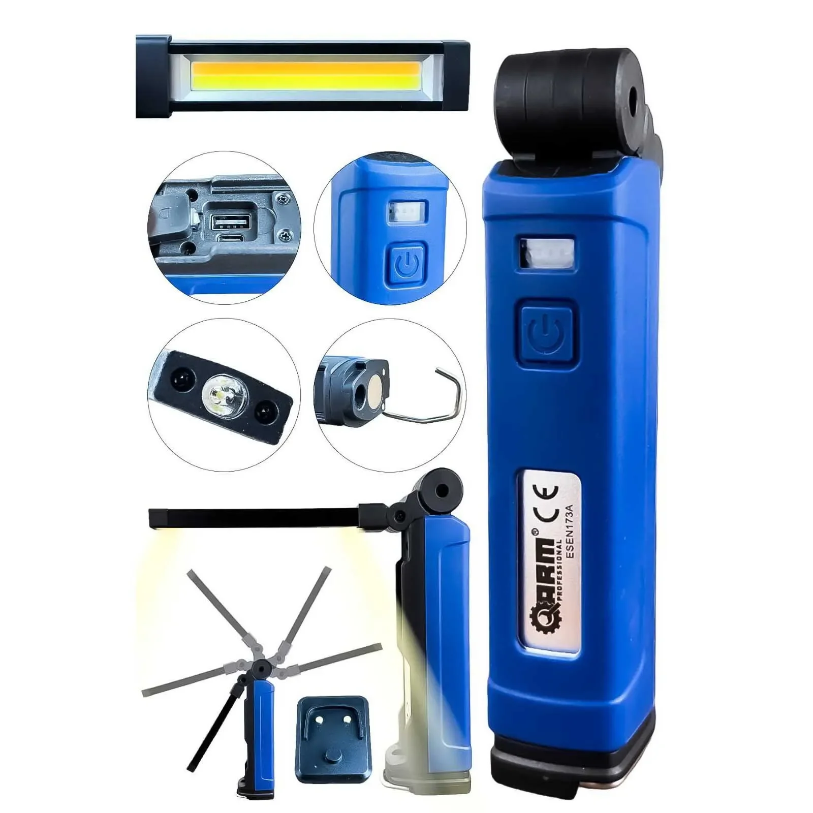 ARM 1000 Lümen Şarjlı Led Lamba Mıknatıslı Fener ESEN173A, yüksek parlaklık, esnek tasarım ve ek işlevsellik sunan, özellikle profesyonel ve dış mekan kullanımları için tasarlanmış bir çalışma lambasıdır.