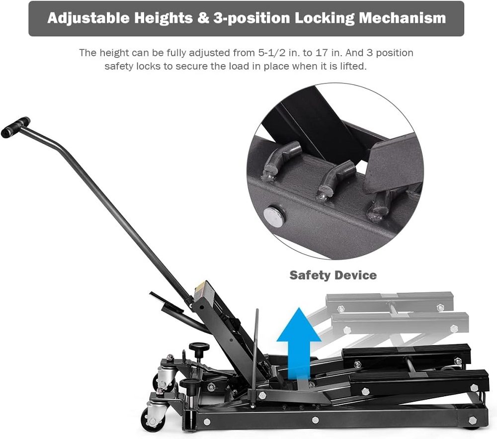 FRIKO motosiklet lifti, hidrolik basınç prensibiyle çalışır. Ayak pedalı her basıldığında hidrolik piston devreye girer ve makas sistemi yukarı doğru açılarak motoru kaldırır. Bu sistem: