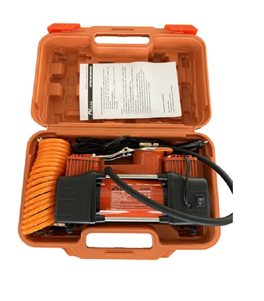 Friko Araç Araba Lastik Bot Şişirme Kompresörü; güçlü çift pistonlu motor yapısı, dayanıklı çelik gövdesi ve yüksek basınç kapasitesi ile araç kullanıcıları, kamp severler ve profesyonel kullanım için özel olarak tasarlanmıştır. 12V çalışma sistemi sayesinde araç çakmak girişinden kolayca çalışır ve elektrik prizine ihtiyaç duymadan her ortamda pratik kullanım sunar.