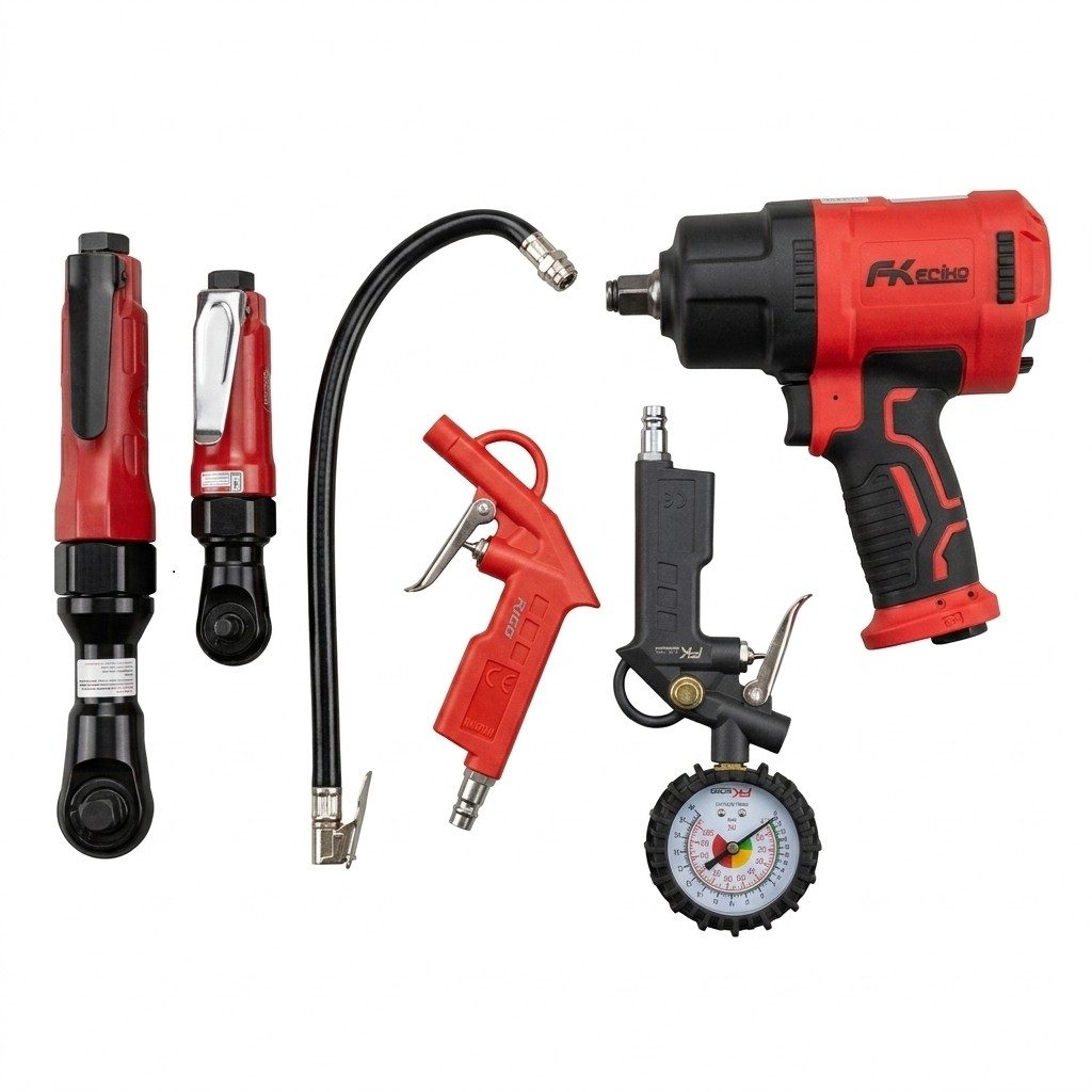 Friko Havalı Somun Sökme Havalı Cırcır Havalı Tabanca Seti 4 Parça, otomotiv servisleri ve teknik bakım atölyeleri için tasarlanmış profesyonel bir havalı el aleti setidir. Kompresör ile çalışan bu ekipmanlar, yüksek tork gücü sayesinde sıkı veya paslanmış somun ve cıvataların hızlı şekilde sökülmesini ve sıkılmasını sağlar.