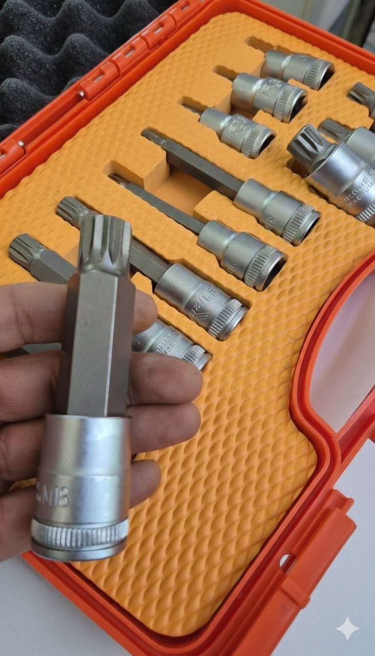 Rico 1/2″ M Tipi Lokmalı Torx Bits Uç Seti, Torx başlı vidaların sökülmesi ve takılması için kullanılan profesyonel lokmalı uç setidir. Yüksek tork gerektiren uygulamalarda maksimum dayanım sağlar. Özellikle otomotiv sektöründe motor, şanzıman ve iç aksam bağlantılarında sıkça tercih edilir.