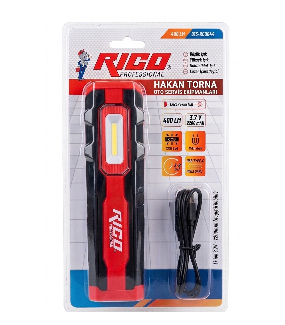 Rico 400 Lümen Şarjlı Mıknatıslı LED Lamba Işıldak Fener 013-RC0044, yüksek ışık gücü ve pratik kullanım özellikleri ile hem profesyonel hem de günlük kullanım için ideal bir aydınlatma çözümüdür. Kompakt tasarımı, güçlü mıknatısı ve şarj edilebilir yapısı sayesinde her ortamda rahatlıkla kullanılabilir.