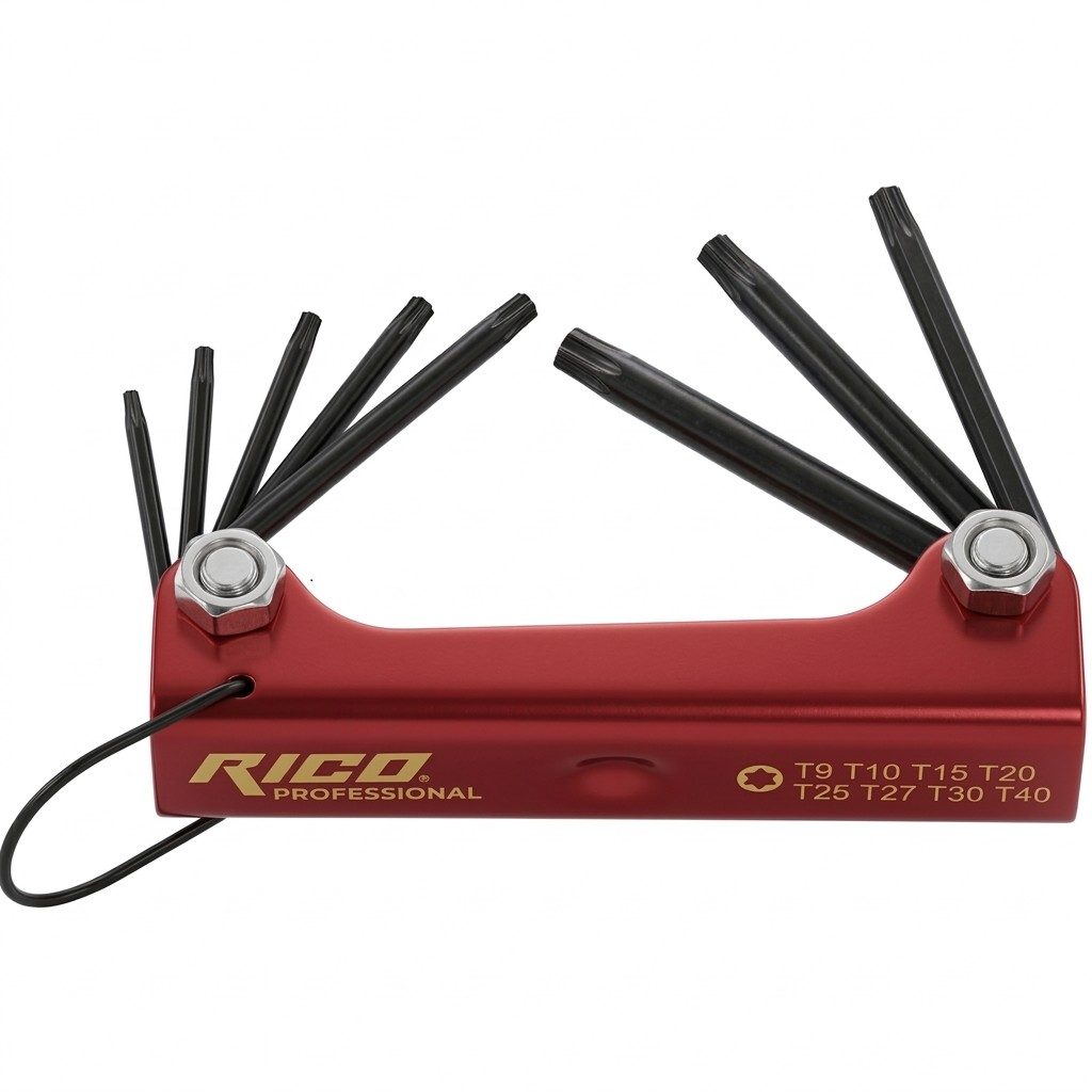 Rico 013-RC0203 model numaralı 8 parçalı çakı tip Torx alyan anahtar seti, hem evde hem de profesyonel ortamlarda sıkça kullanılan çok yönlü bir el aleti setidir. Farklı boyutlardaki Torx vidaları sökmek ve sıkmak için tasarlanmıştır.