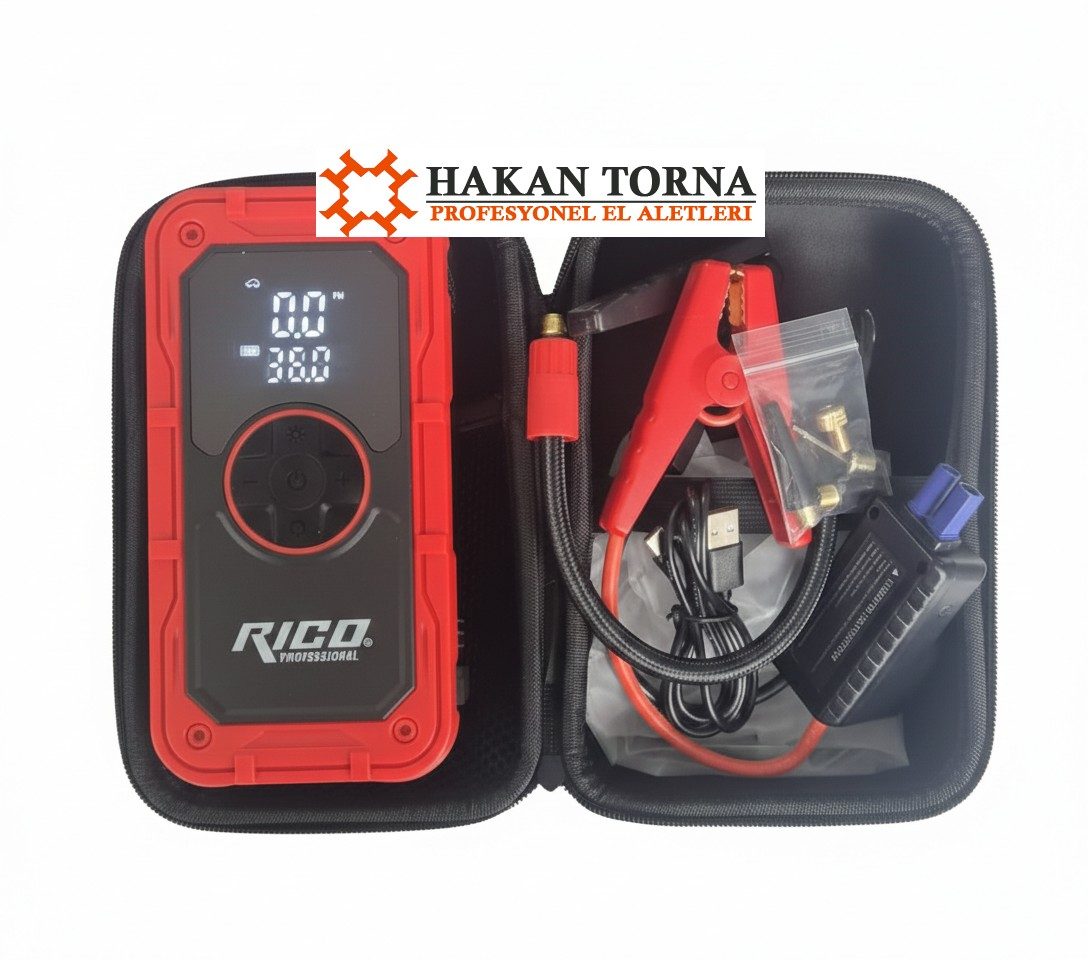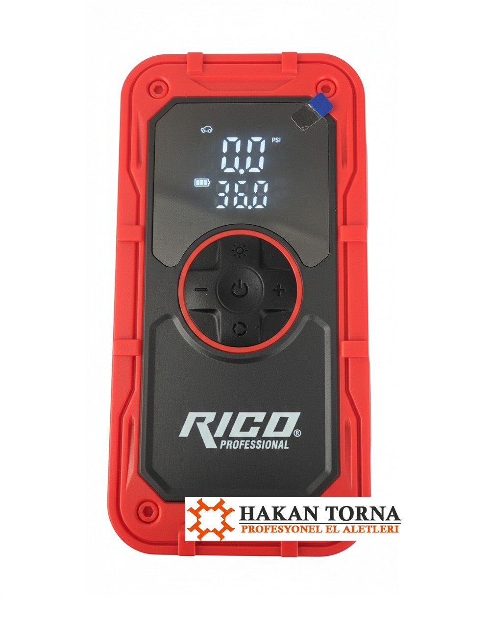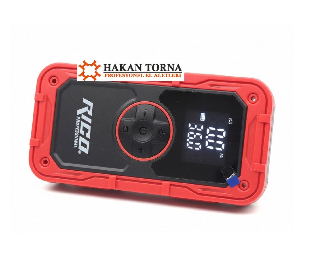 Rico Professional 4’ü 1 Arada Akü Takviye Cihazı 150 PSI Lastik Şişirme Pompası – 20000mAh, 1300A, 20W PD Hızlı Şarj